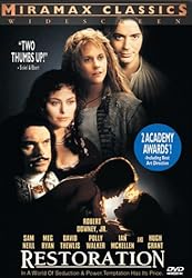 (More customer reviews)"Restoration" won a pair of Oscars for Eugenio Zanetti's Art Direction-Set Deocration and James Acheson's Costume Design, and there is a sense in which the spectacular sets threaten to overwhelm the story, which is based on the novel by Rose Tremain. This is a gorgeous film where the camera often takes time to focus on every detail as we are introduced to one spectacular set after another that presents the lavish court of King Charles II, who returned to the English throne following the restoration of the Stuart monarch. As far as period costume dramas go this 1994 film is virtually in a class by itself, and how it was made for only $18 million is beyond belief.
